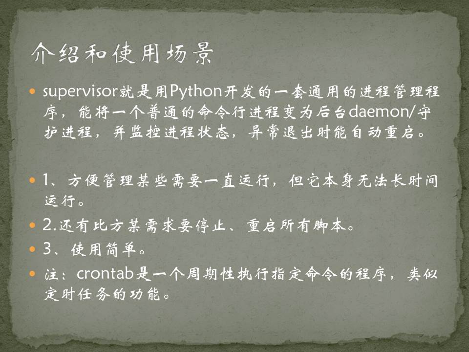 supervisor Updated by xuchunhua on 2016年12月16日 [supervisord] environment=LC_ALL=‘zh_CN.UTF-8’,LANG=‘zh_CN.UTF-8’