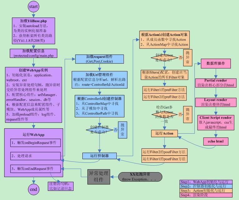 详细的流程可以参见yii社区中的一张图